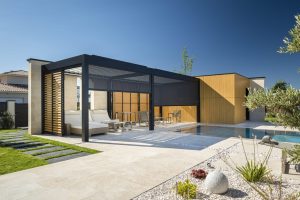 Pre prístrešok na auto alebo pergolu s posuvnými dverami si môžete vybrať aj Loggialu Plano – hliníkový rám s obdĺžnikovými pevnými žalúziami alebo Loggialu Stirata – pevný panel v tkanej štruktúre. Môžete sa tiež rozhodnúť uzavrieť pergolu posuvnými dverami pomocou zvislých drevených líšt Loggiawood Linea . Loggia posuvné panely sú dostupné pre Camargue, Camargue Skye, Algarve a Algarve Canvas.